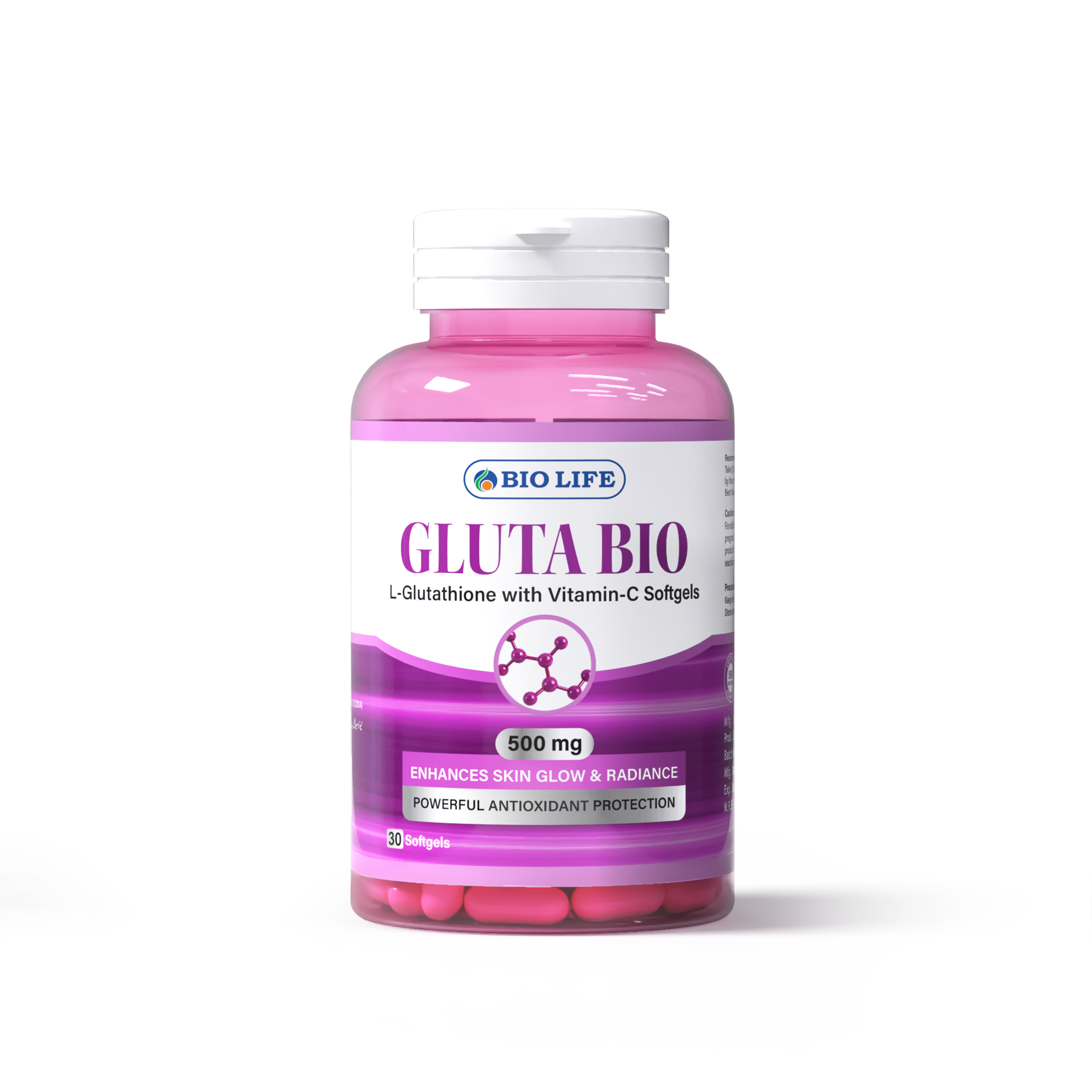 Unlock your most radiant and even-toned complexion with **Gluta Bio Softgels** by Bio Life. This high-potency formula is your daily defense against aging and dullness, featuring the body's **Master Antioxidant, L-Glutathione (500mg)**, paired with **activating Vitamin C (50mg)**.